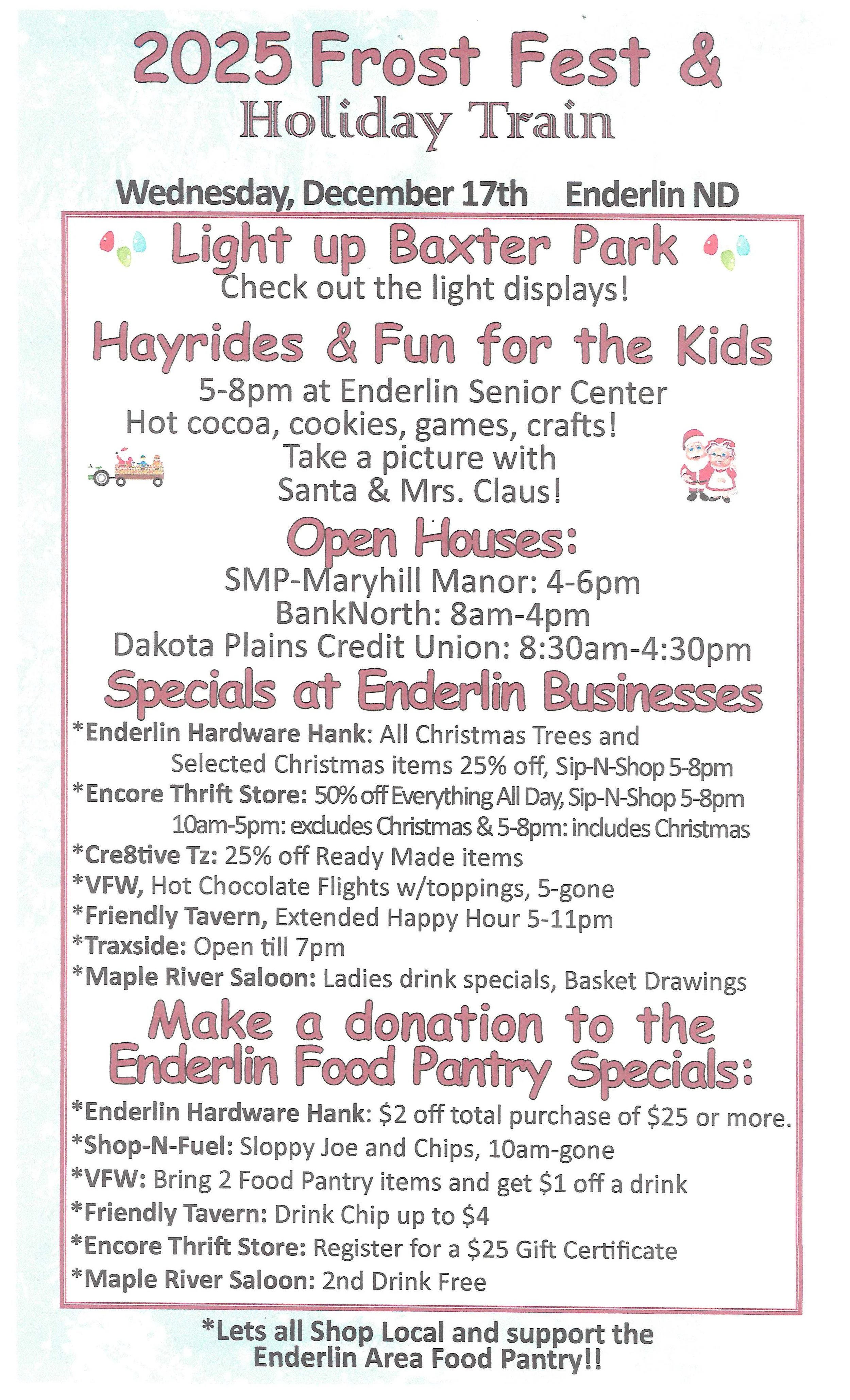 Enderlin, North Dakota | enderlinadvocate@msn.com | Enderlin City Auditor: 701-437-3476
